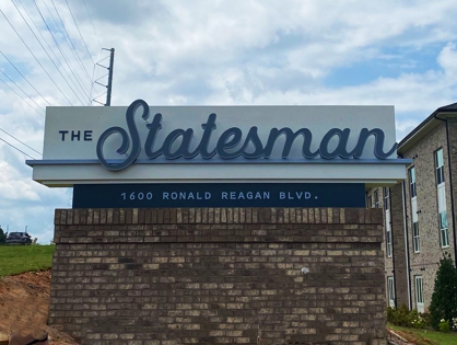2022. Pinnacle 33 fabricated and installed the identity signage for The Statesman Apartments in Cumming, GA The distinctive monument sign and attractive wall signs gave a sleek finishing touch to this new property.