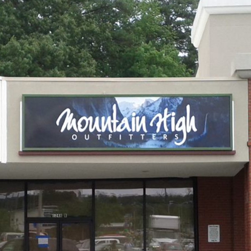 Wall mounded cabinet signs provide simple, effective building identification. Typically internally illuminated, these signs can be built in a number of shapes and sizes. Box signs have standard shapes and cloud signs contour the shapes of the letters on the sign. They are a classic branding solution for commercial and small businesses.