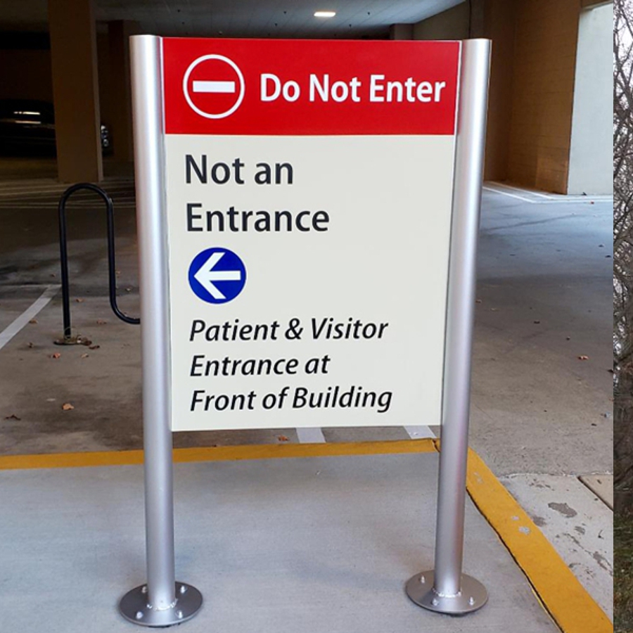 Low-profile freestanding directionals guide the public to entrances and parking areas. They are frequently used on large campuses, such as hospitals and airports. Informational signs provide enlightenment with regard to buildings, displays, or surrounding areas. These signs are functional and attractive and can be illuminated or non-illuminated as desired.